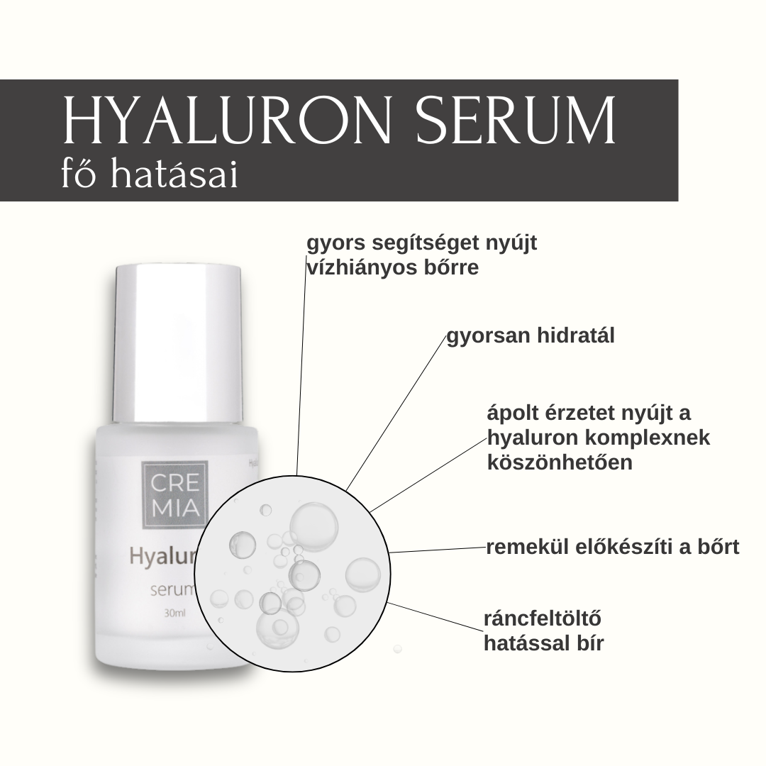 A hyaluronsav nagy vízmegkötő képességgel rendelkezik, a bőr természetes alkotóeleme. Sajnos mennyisége a szervezetünkben a kor előrehaladtával csökken. Kozmetikusok azt ajánlják, hogy már 20 éves kortól érdemes rendszeresen használni hyaluronsavat tartalmazó kozmetikumokat, mert idősebb korban látványos a különbség azok között, akik korábban használtak és azok között, akik nem. Természetesen soha nincs késő elkezdeni ezek használatát, mert a bőr meghálálja.